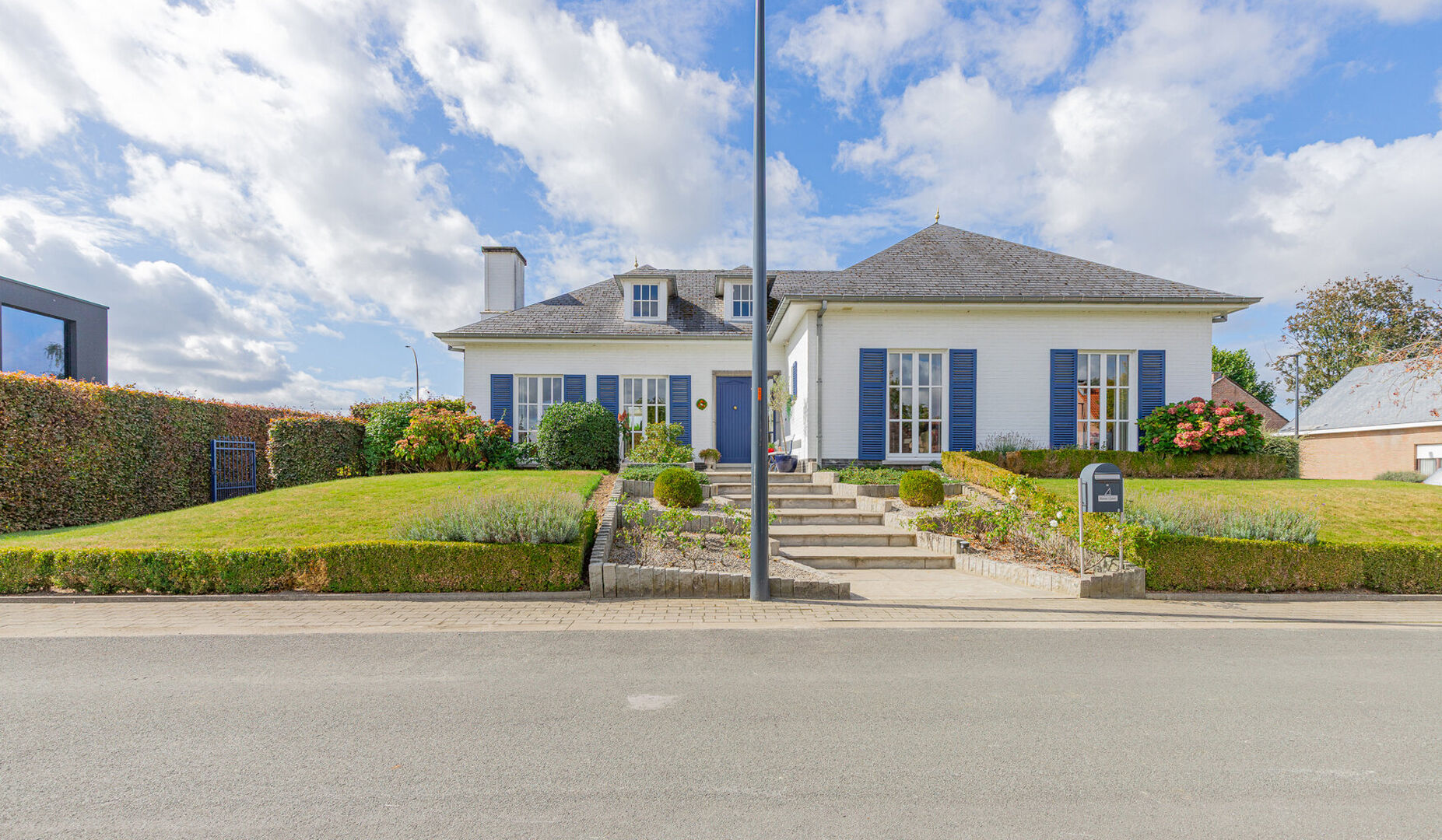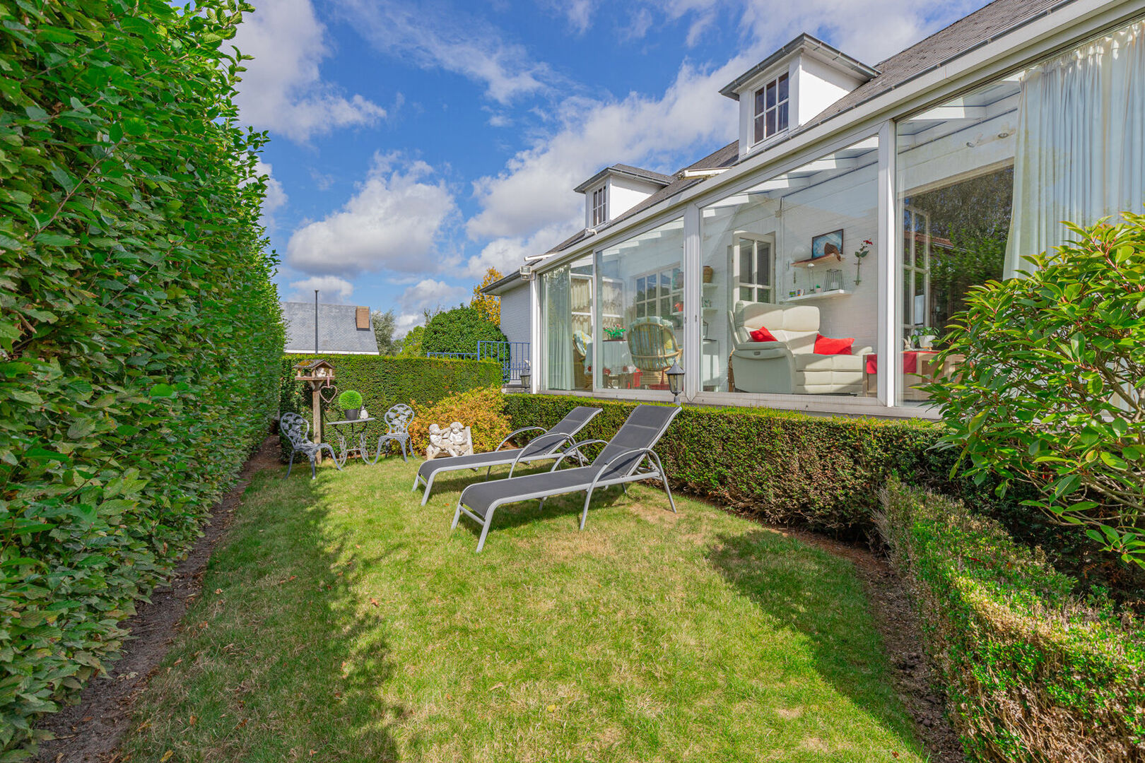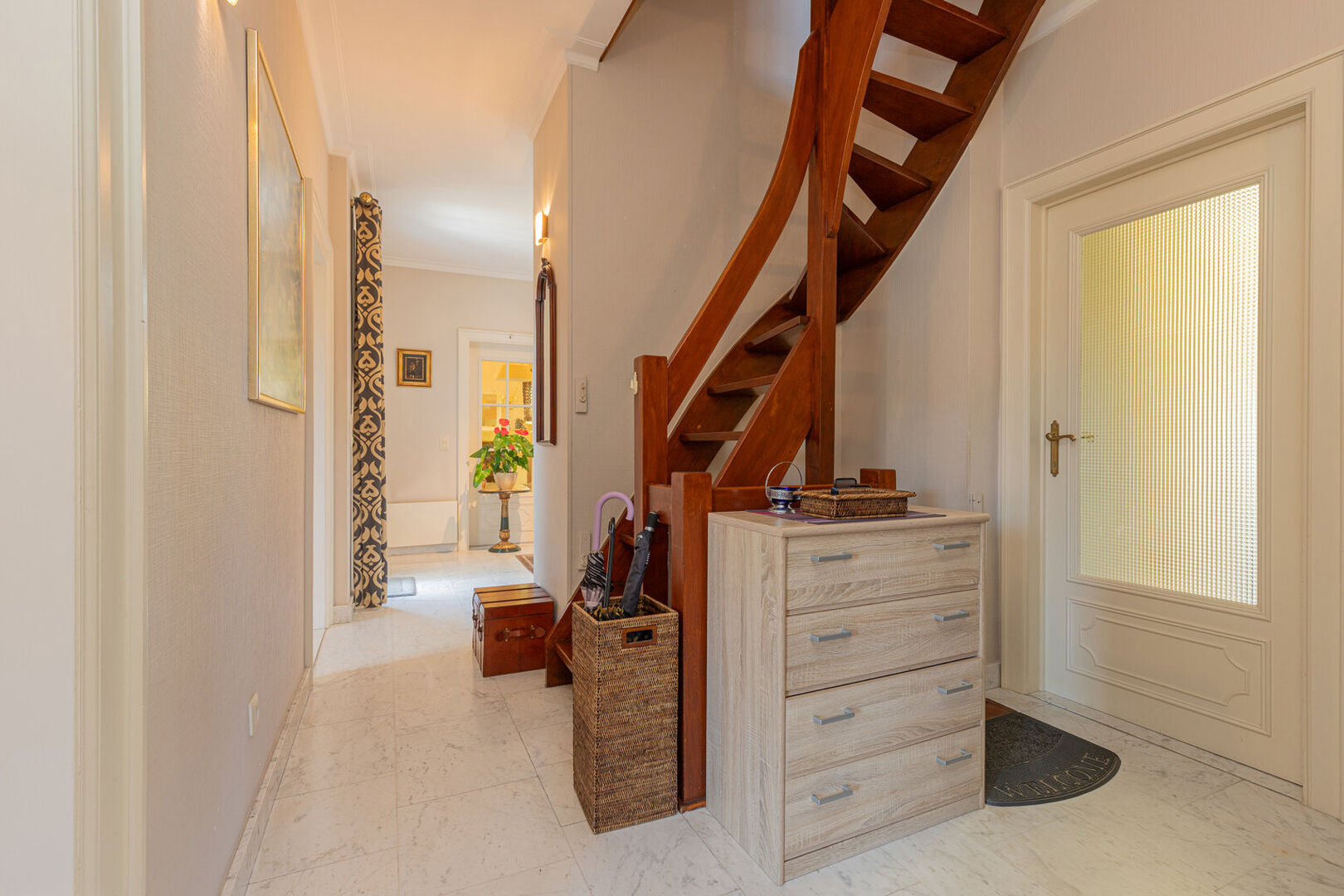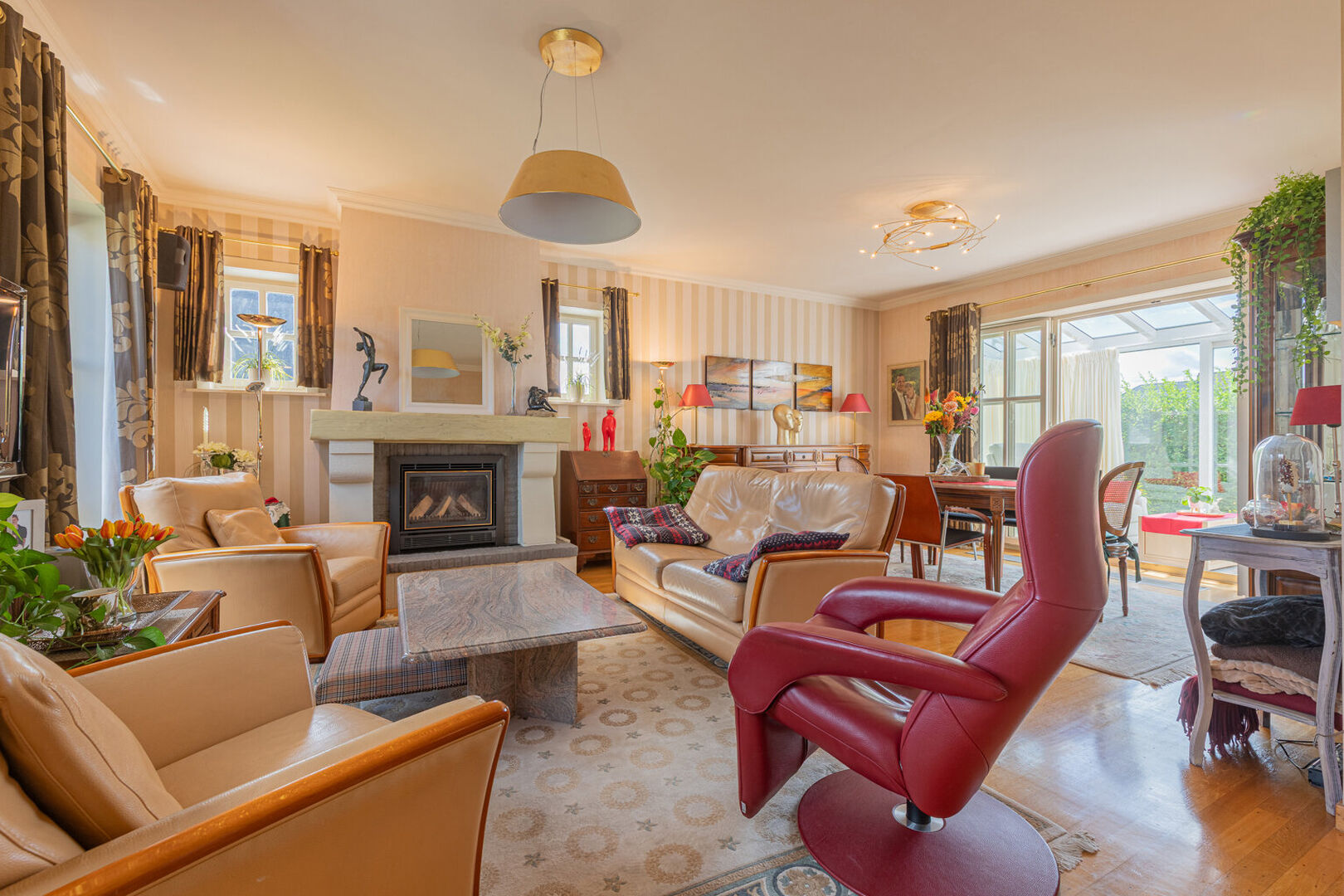 Deze zeer goed onderhouden, stijlvolle villa biedt een uitzonderlijke woonbeleving voor wie houdt van ruimte en comfort. Via de inkomhal met afzonderlijk gastentoilet bereik je de grote, lichtrijke leefruimte met eet- en zithoek. Aansluitend bevindt zich de ruime leefkeuken, volledig ingericht en met directe toegang tot de veranda.