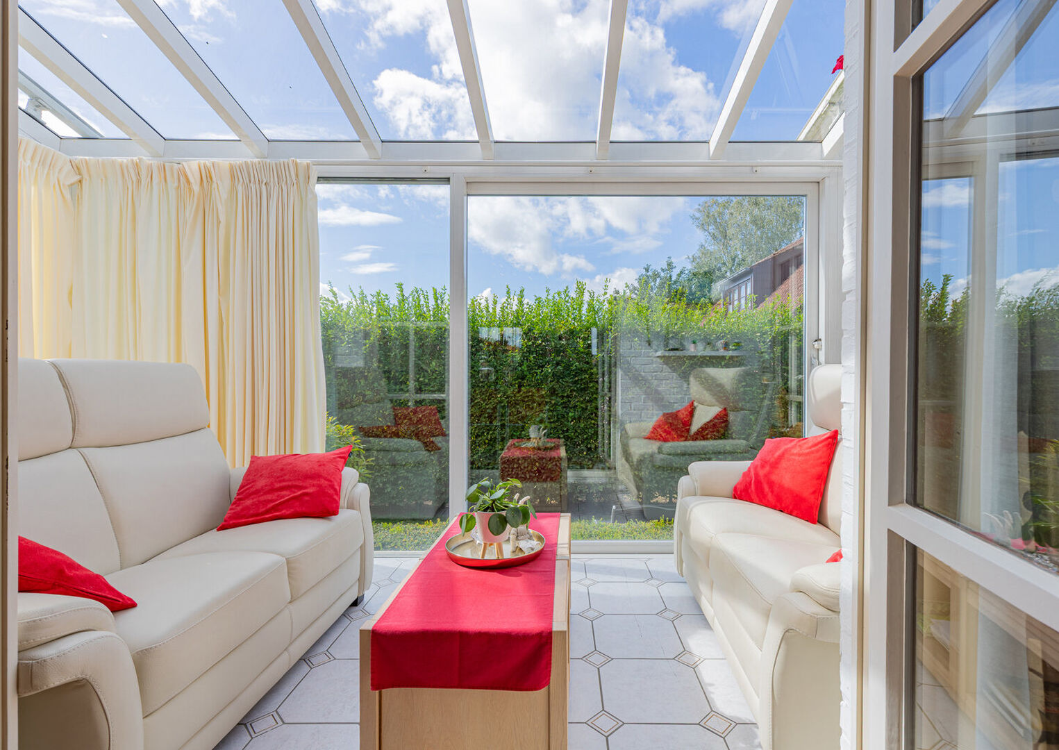 Wie nood heeft aan veel opbergruimte, kan in deze woning alles kwijt: de woning is volledig onderkelderd en beschikt tevens over een inpandige dubbele garage. Vanuit de veranda heb je zicht op de rustige, zonnige tuin.