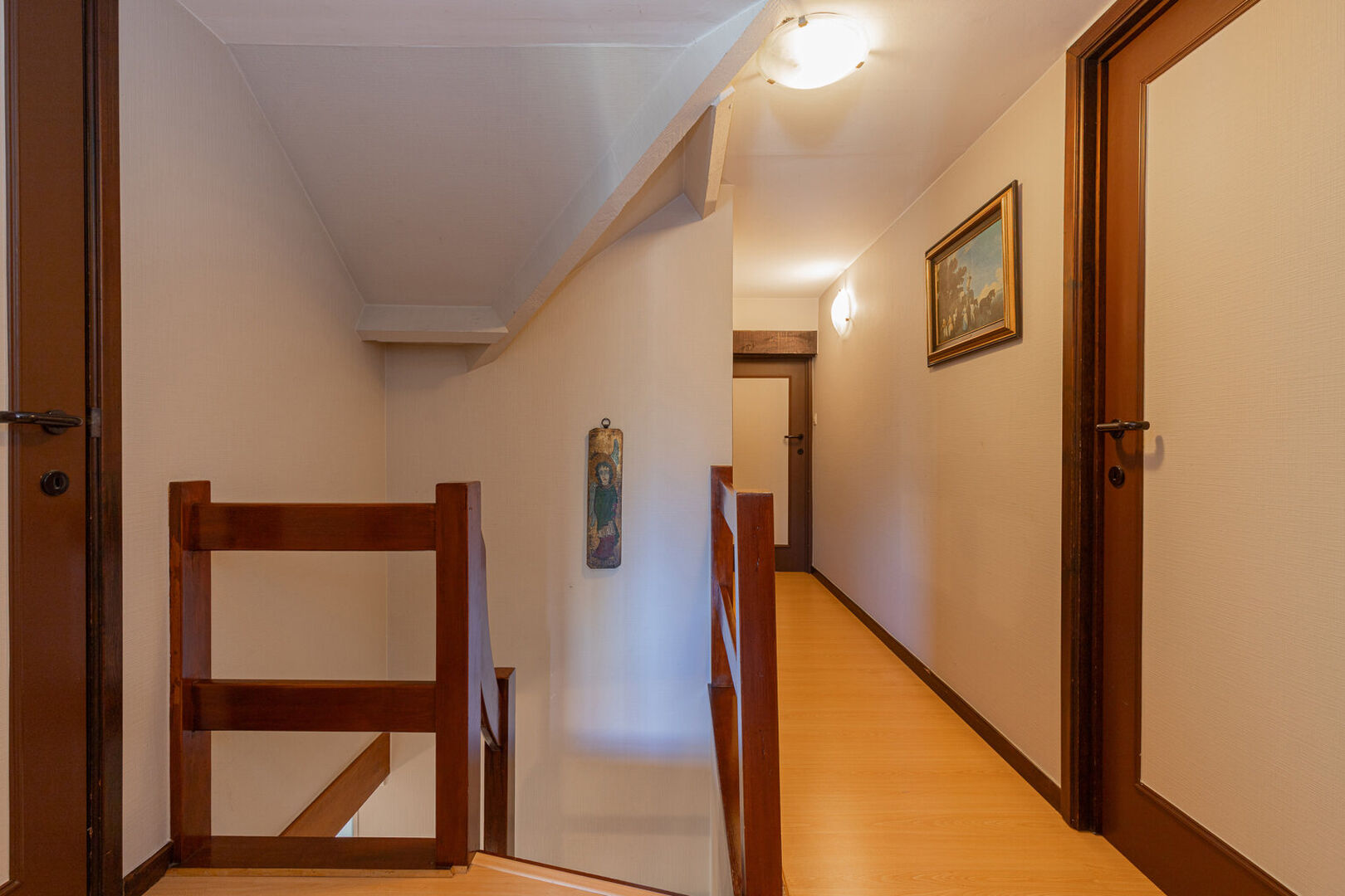 Op het gelijkvloers vind je 2 slaapkamers en een badkamer, op de 1e verdieping vind je nog 2 extra slaapkamers, een toilet en een zolder.