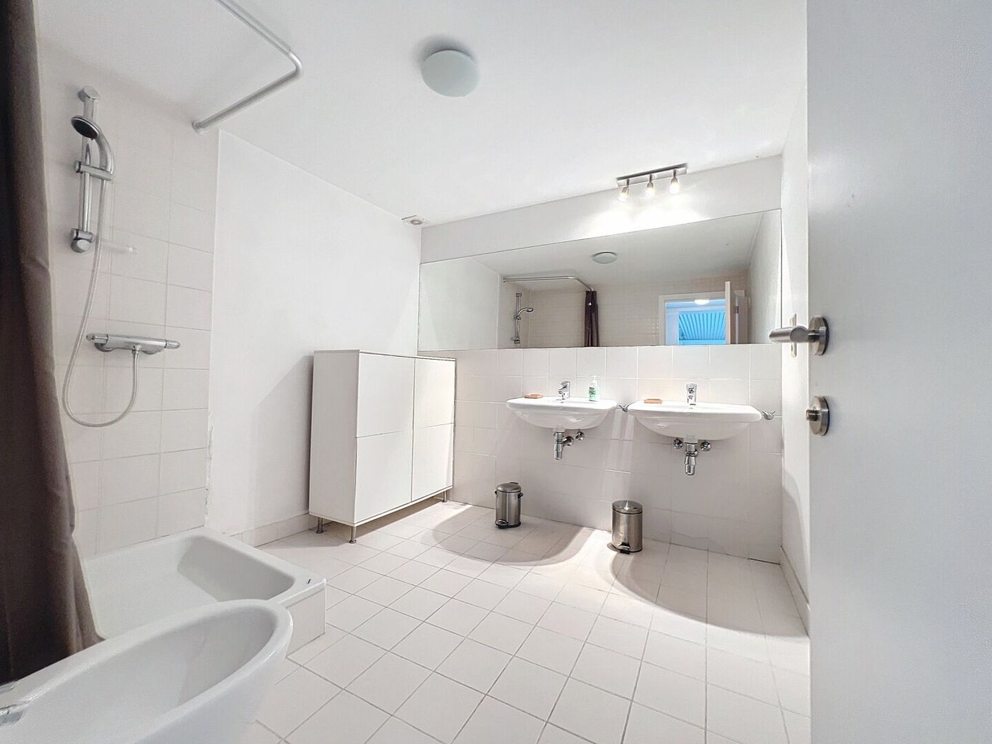 een ruime badkamer en een ruime berging.
